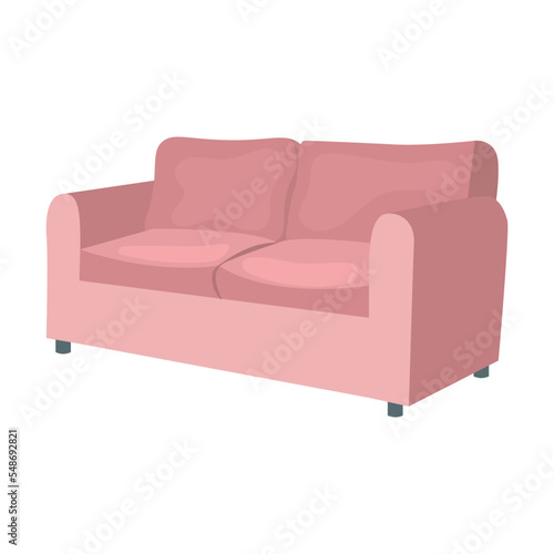 Soft double sofa. Modern house or office furniture cartoon vector illustration. Design elements, couch, table, chair for home, bedroom or living room