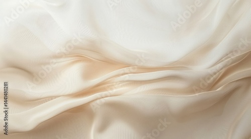 Soft flowing beige fabric with gentle folds and wrinkles creating a smooth and delicate texture evoking calmness and elegance