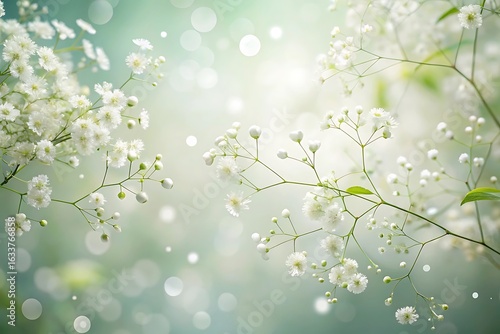 Soft focus delicate white blossoms with gentle bokeh and sunlight