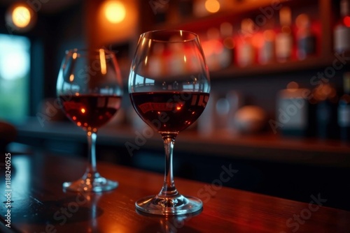 Soft focus on wine glasses in a dimly lit bar , bar, night, drink