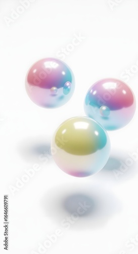 Soft Iridescent Spheres Floating on Clean White, Capturing Purity, Innovation, and Dreamlike Serenity for Modern Concepts