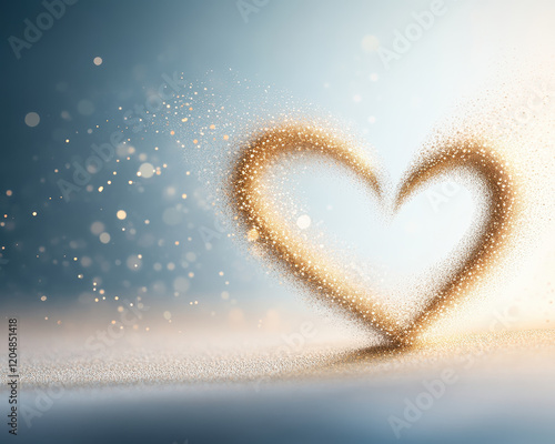 soft light creates vibrant heart shape made of shimmering particles, evoking warmth and love