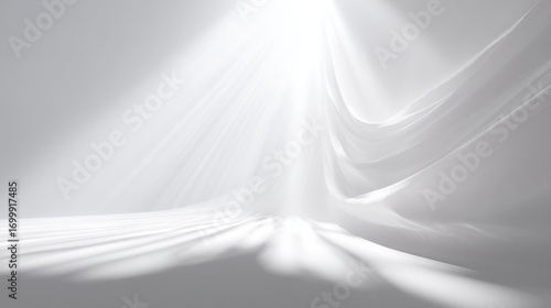 Soft light rays on a pure white background, subtle crescent silhouette barely visible, ethereal and sacred, large central blank space for Quranic calligraphy or quotes, 16:9