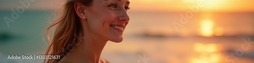 Soft light, rosy cheeks, gentle smile, ethereal beauty, attractive, content
