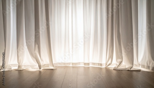 Soft light streaming through sheer curtains indoor space photograph calm environment close-up view minimalist concept
