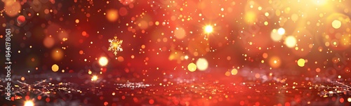 Soft lights and snow on christmas red background.