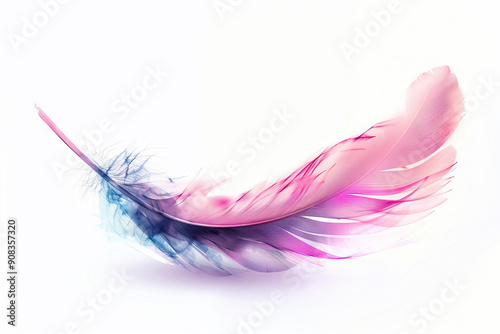 Soft multicolored feather floating gently against a white background, symbolizing lightness and ethereal beauty