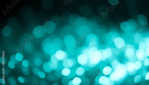 Soft Out-of-Focus Teal Bokeh Lights on Black Gradient Dreamy Background Texture