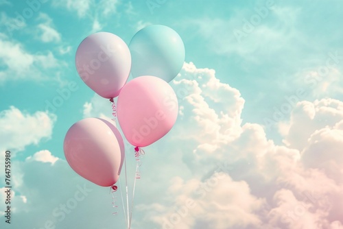 Soft pastel clouds float like balloons against a rainbow backdrop creating a serene wallpaper