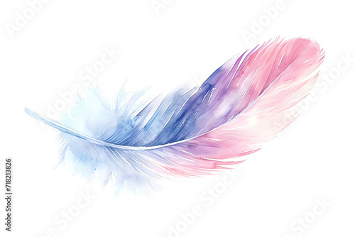 Soft pastel detailed feather in watercolor style isolated on white background