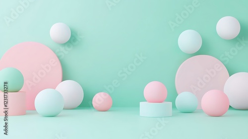 Soft Pastel Geometric Shapes on Mint Background for Modern and Minimalist Decorative Design