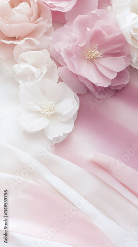 Soft pastel gradient of azalea pink and ivory layered with delicate white noise for an airy feel.