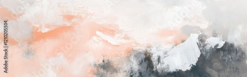 Soft pastel peach and gray chaotic abstract art creates a soothing yet dynamic atmosphere in a modern setting