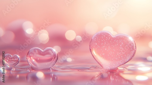 Soft pastel pink hearts in a minimalistic scene with a radiant heart bubble floating above a gentle gradient background, creating a serene and romantic atmosphere for love-themed designs.