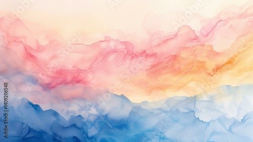 Soft pastel watercolor wash background in shades of pink, blue, and yellow with an organic, fluid abstract design