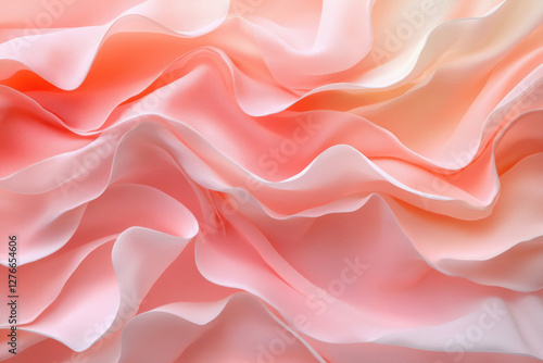 Soft, peach-colored fabric with gentle waves and folds, creating a luxurious and elegant texture.