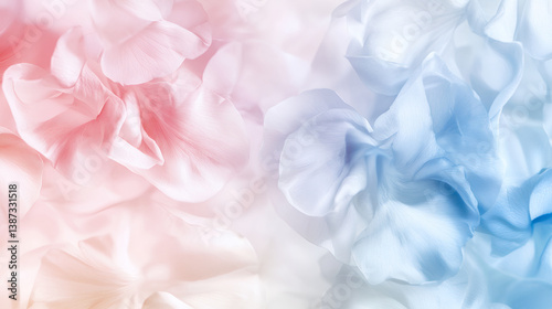 Soft pink and blue flower petals blend harmoniously, creating serene and dreamy atmosphere. delicate textures evoke sense of calm and beauty