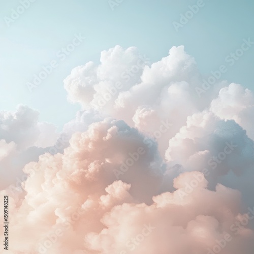Soft Pink and White Fluffy Clouds in a Clear Blue Sky