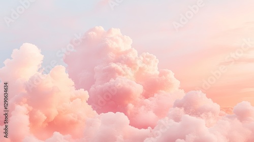 Soft pink clouds gently illuminated by warm sunlight create sere