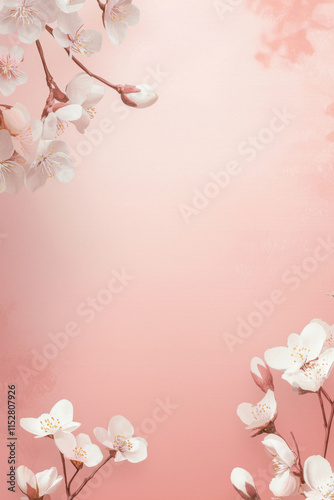 Soft pink gradient background with blooming cherry blossoms, creating serene and romantic vibe