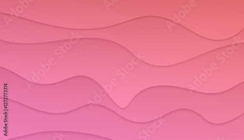 Soft Pink Gradient Waves 3D Paper Cut Style Flowing Lines in Coral to Deep Pink