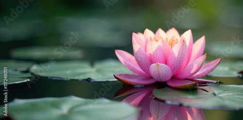 Soft pink water lily blooms on a serene lake surface, water features, botanical