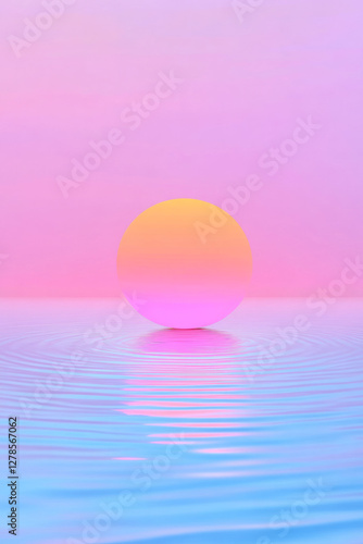 Soft pinkish sunset glow at the center fading into twilight blues, with radiating ripple patterns