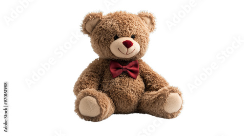 Soft Plush Teddy Bear With Red Bow Tie on White Background