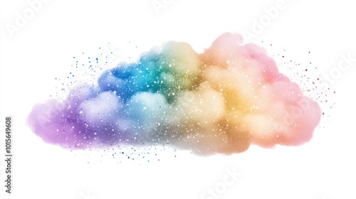 Soft, sparkly rainbow cloud with shimmering glitter details, isolated on white