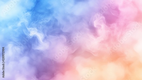Soft swirling clouds of color blend in hues of blue, pink, and orange creating an ethereal atmosphere in a dreamy backdrop