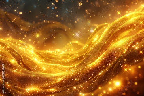 Soft swirling patterns of golden glitter resemble a cosmic nebula, enhanced by diffused lighting for a magical glow
