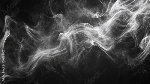 Soft, swirling smoke patterns in grayscale, set against a black background, creating a mysterious abstract design.