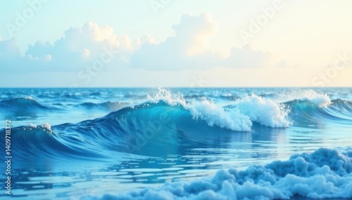Soft watercolor waves on a gentle ocean surface, calm, serene