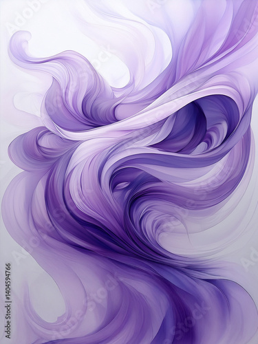Soft, wavy lavender lines, resembling floating smoke, blend delicately on a bone white background. Gentle contrast and oil-painting-inspired enveloping light create a dreamy, spiritual calm