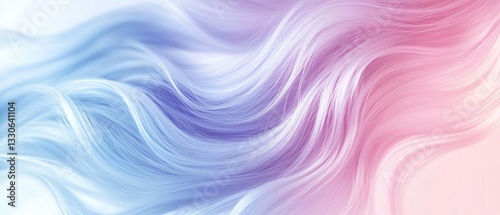 Soft Wavy Purple Blue Pastel Hair Blending into a Smooth Gradient Backdrop, Creating a Dreamy and Elegant Effect. Copy space. Generative AI