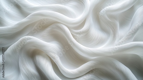 Soft, wavy, white fabric is rippled. Light shining through the thin, delicate material
