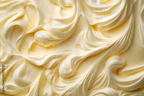 Soft whipped butter textured background. Creamy surface and texture is swirled and mixed
