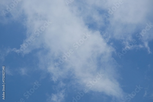 Soft white clouds drift across a bright blue sky, creating a serene atmosphere, ideal for backgrounds or nature-themed designs with ample copy space