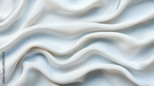 Soft white fabric drapes gracefully, showcasing elegant folds and a smooth texture, ideal for backgrounds or textile designs.