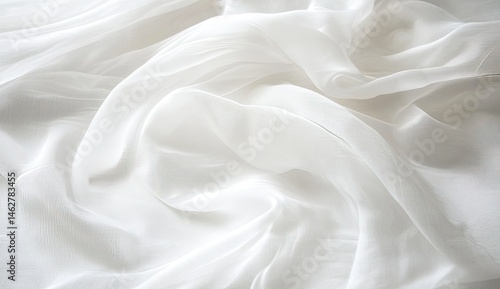 Soft, white fabric drapes in elegant folds. Delicate, flowing texture