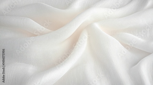 Soft white fabric with delicate texture and gentle folds creating a smooth, flowing appearance and a calm, serene atmosphere