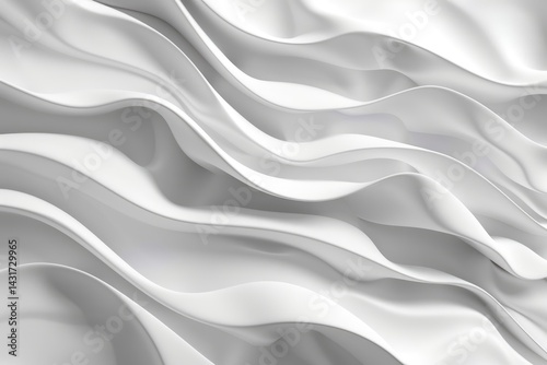 Soft white fabric with flowing curves. Background image of wavy white texture with flowing wave pattern. Textural photography for fabric and material design. Fluid and liquid texture design. AIG51.