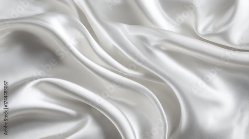 Soft white silk drapes elegantly revealing a smooth texture and subtle sheen. The fabric is laid out in folds catching light beautifully in a studio setting.