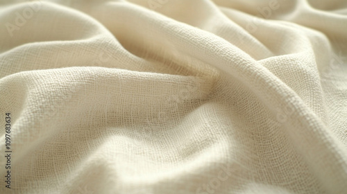 soft white woven linen fabric texture, highlighting the intricate patterns and delicate fibers that symbolize purity, simplicity, and the timeless elegance of natural materials