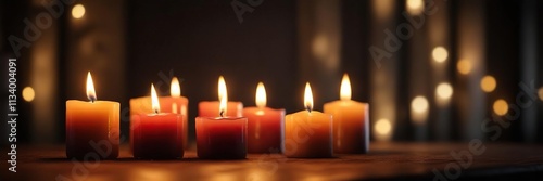 Softly glowing candles create a sense of calm in a dark room with bokeh and calming lighting effects, bokeh, ambiance