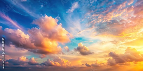Softly glowing gradient sky with light pink and blue clouds, set against a subtle yellow and orange sunset hue , dreamy, sky, dreamy