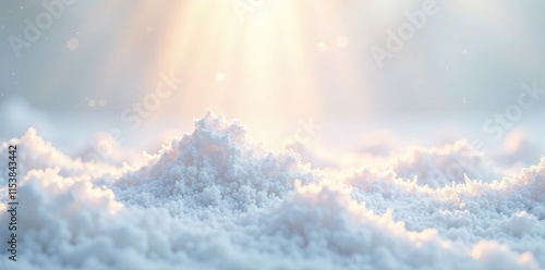 Softly glowing light falls on a frothy white surface, white background, serenity