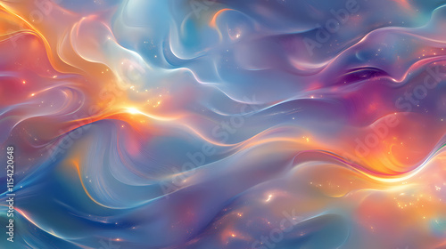 Softly glowing luminescent particles oscillate in an abstract wave of light and color, luminous oscillation, shimmering aura. Oscillation. Illustration