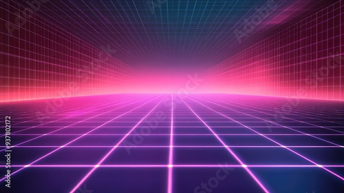 Softly glowing retro gridlines with a gradient background, evoking a sense of nostalgia and digital retro-futurism.