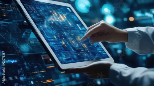 Software engineers use digital tablets and AI for big data management, applying data science principles